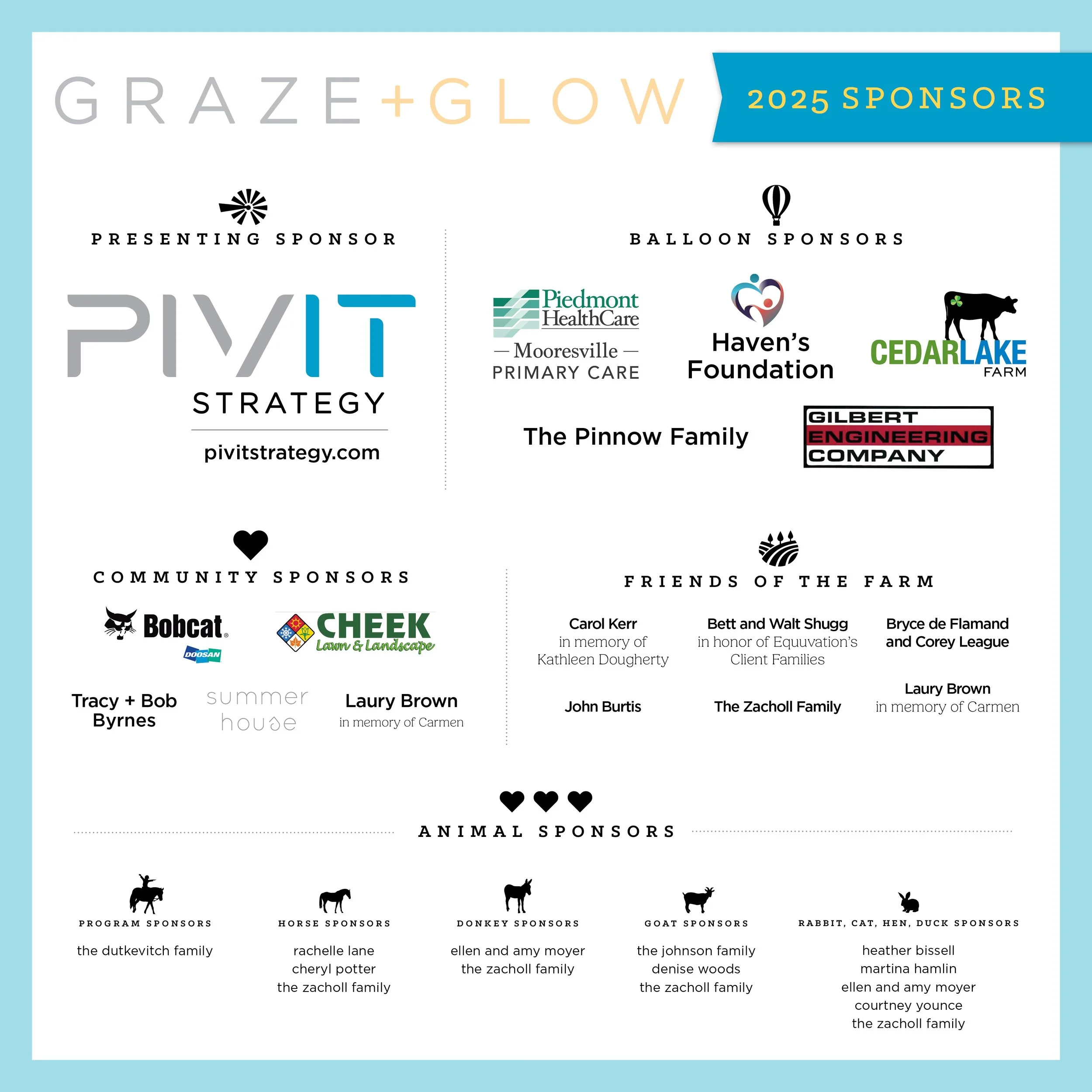 Thank you for reserving tickets to join us at our fourth annual GRAZE+GLOW! Below you will find all of the details needed for the event.